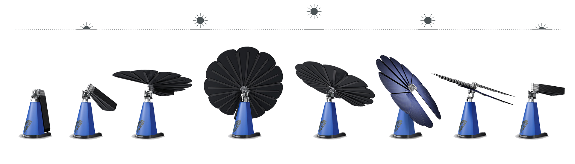 Il sistema di inseguimento intelligente è il cuore della tecnologia di SmartFlower. Ogni mattina, al sorgere del sole, SmartFlower si apre automaticamente.