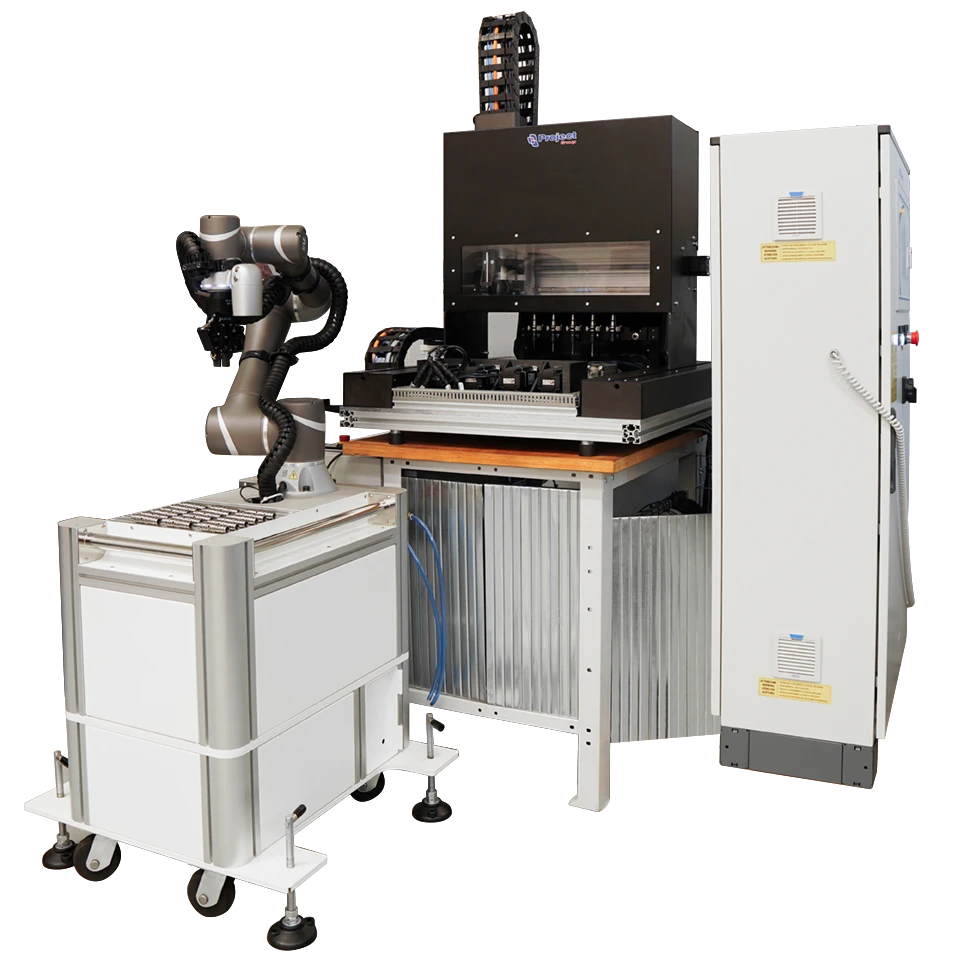 Sbavatura simultanea di 4 fino a 6 componenti, offrendo un’efficienza senza precedenti. La ripresa costante e ripetibile dei fori garantisce una produzione fluida.